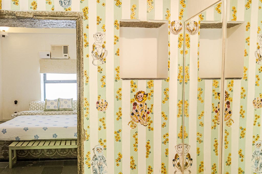 These unique jewel-box rooms have been hand-painted by a master craftsman, trained in the tradition of the Mewari Miniature. The rooms are replete with motifs and inspirations drawn from the flora and fauna of Rangniwas.