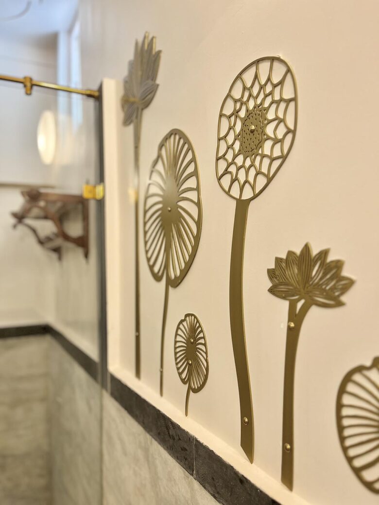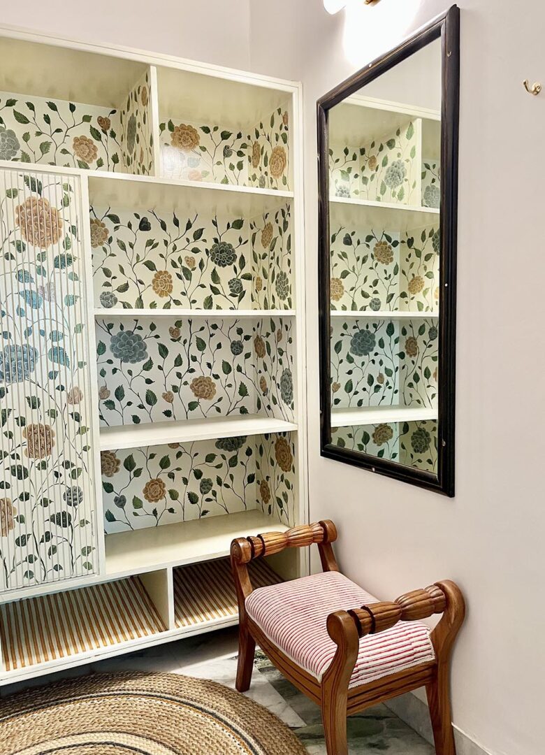 These unique jewel-box rooms have been hand-painted by a master craftsman, trained in the tradition of the Mewari Miniature. The rooms are replete with motifs and inspirations drawn from the flora and fauna of Rangniwas.