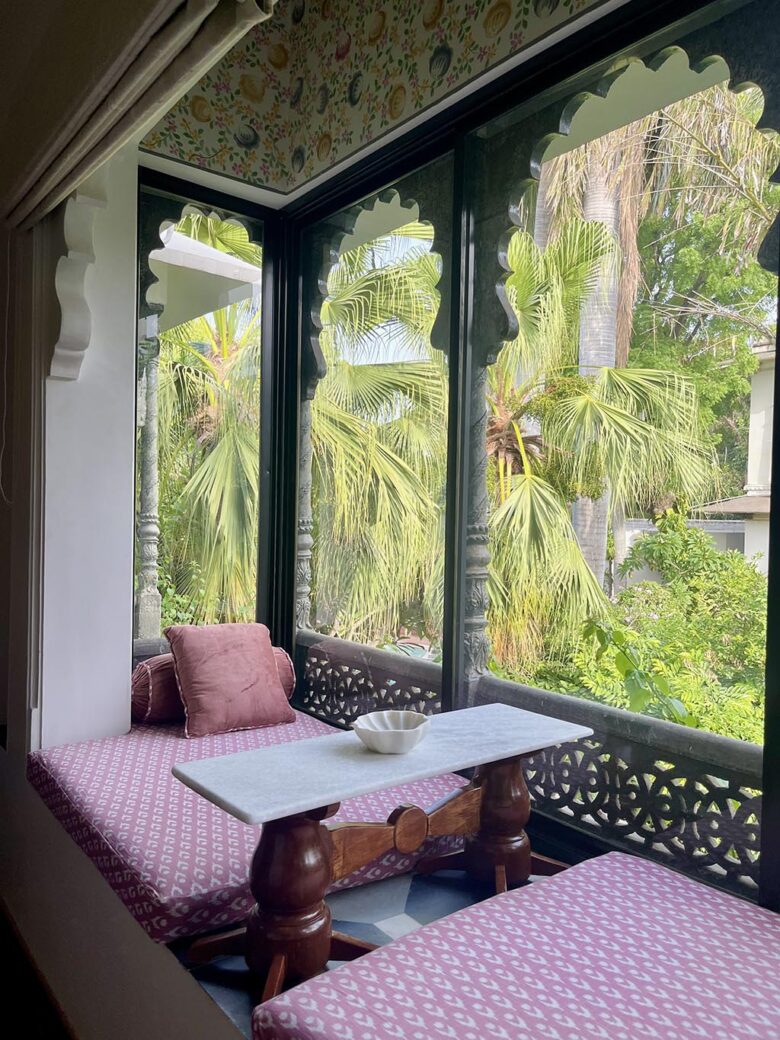 The rooms feature two jharokhas. Perhaps on cool, winter days you would like to lie in the outdoor jharokha and bask in the sun or on summer days you would like to pull down the blinds and take a nap in the indoor jharokha.